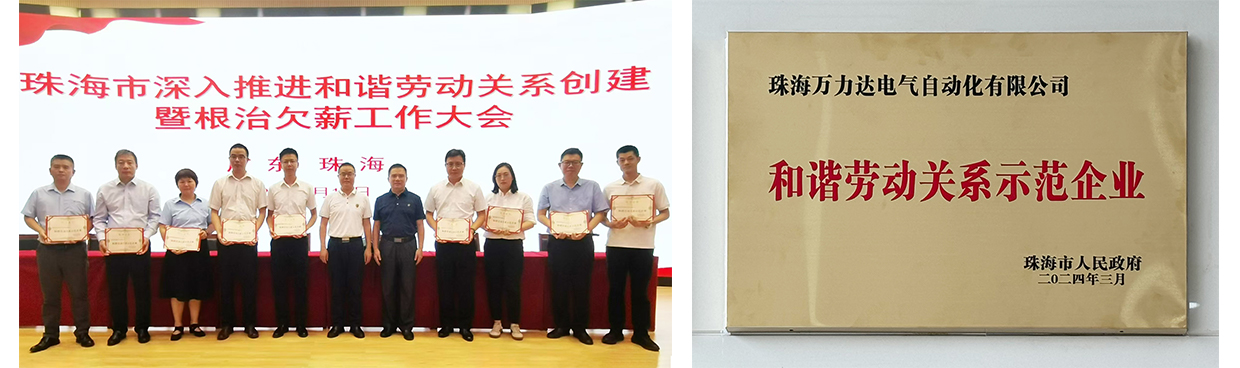 日前,珠海市深入推進和諧勞動關系創建活動暨根治欠薪工作大會召開,會上萬力達電氣作為“2023年珠海市和諧勞動關系示范企業”之一,被授予牌匾和證書。這是對萬力達電氣長期以來致力于構建良好工作環境、促進員工與企業共同發展的充分肯定。